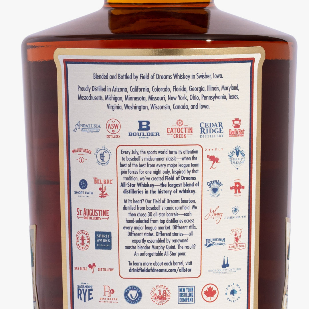 Never been done before, Field of Dreams All-Star Whiskey is a blend at an epic scale - 30 of the most well-known and well-regarded distilleries (across 18 states and 2 countries) coming together to form a complex, well-balanced whiskey.
